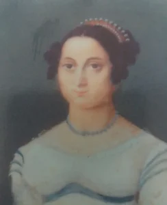 En el Museo de Bellas Artes de Asturias existe una miniatura suya sobre marfil, 5,5 x 5,2 cm de pintor anónimo, y que según podemos leer en el catálogo dataría de su matrimonio con el General Riego. La figura se representa de busto, frontal, con el pelo de raya al medio, recogido en un moño, y dos tirabuzones a cada lado. Lleva puesta una gargantilla de turquesas a juego con las cintas azules del vestido de talle imperio. Ojos grandes y mirada melancólica que expresa su carácter retraído. Preguntada la procedencia de la pintura nos respondieron que fue adquirida el 10 de octubre de 1993 a un particular por el Museo sin facilitar el nombre del vendedor dando como justificación que la protección de datos lo impide.